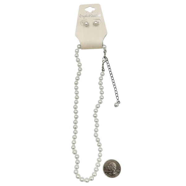 6mm Knotted White Pearl Earring & Necklace Set (16+3in)