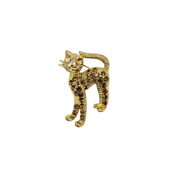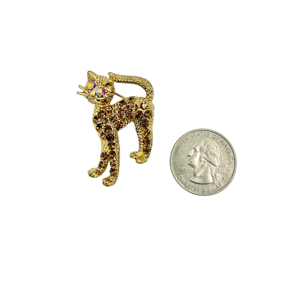 Crystal Brown Cat Brooch Pin (AB10209)(1x1.5in)