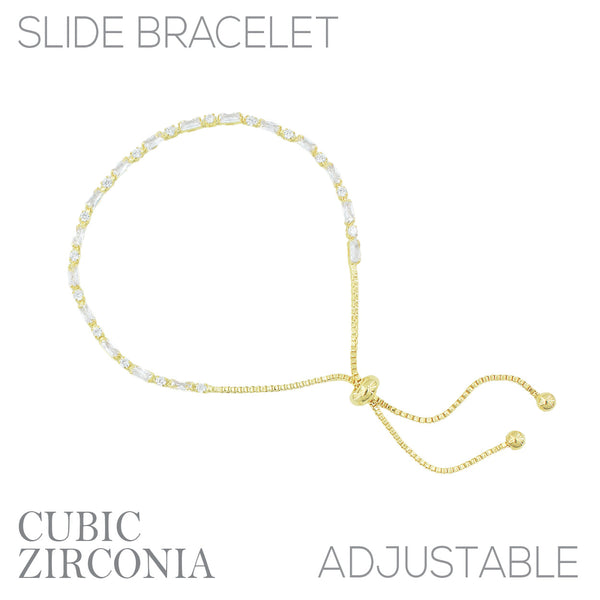 Cubic Zirconia Baguette Round Slider Tennis Bracelet in Silver or Gold