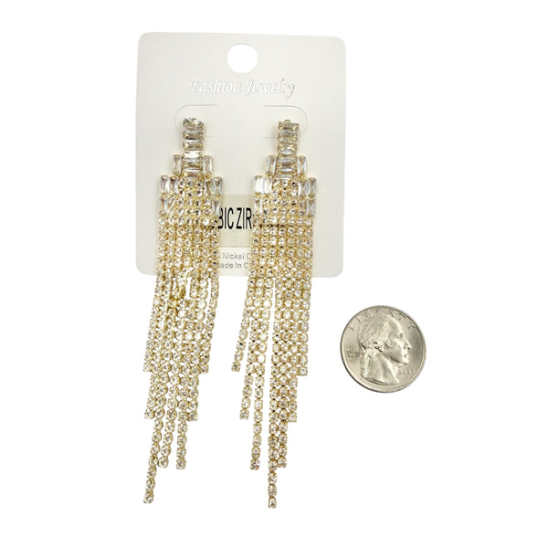 Cubic Zirconia Chandelier Tassel Earrings in Silver or Gold (0.75x4in)
