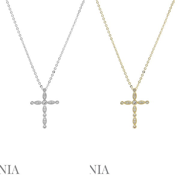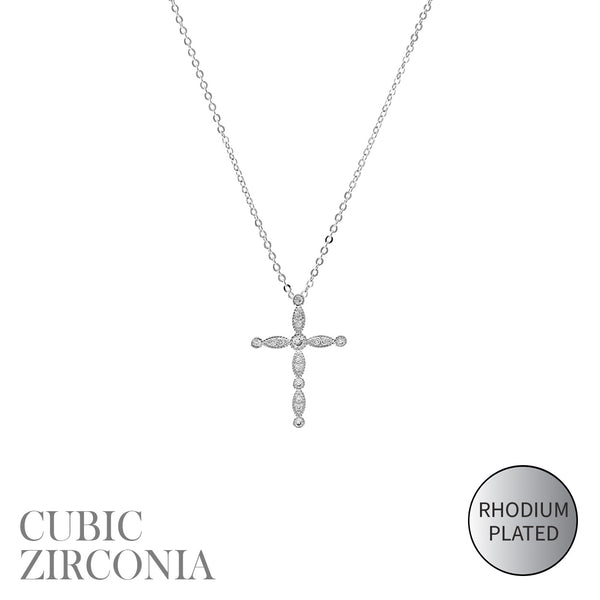 Cubic Zirconia Cross Necklace in Silver or Gold (17463CR)(16+3in)