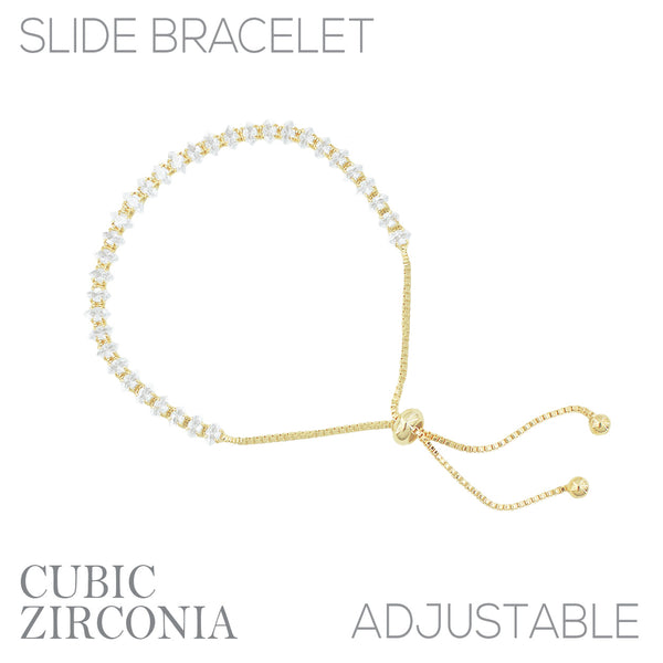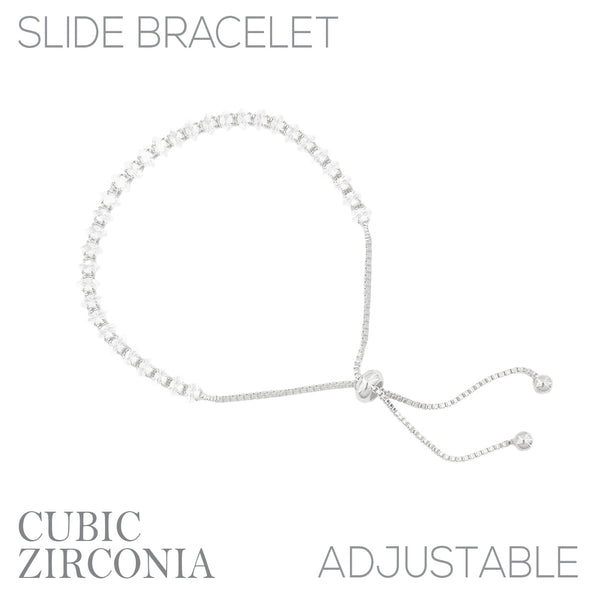 Cubic Zirconia Marquise Slider Bracelet in Silver or Gold
