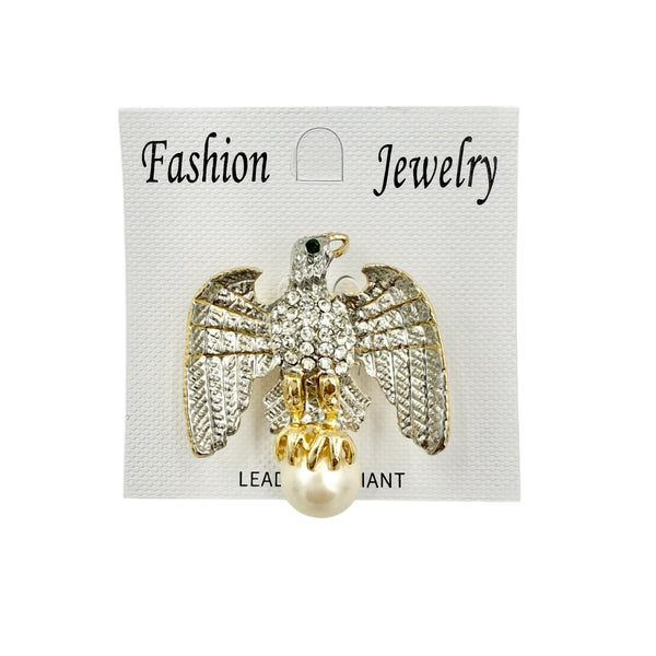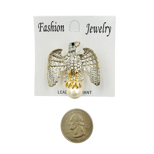 Eagle Clutching Pearl Brooch Pin (1.5x1.5in)