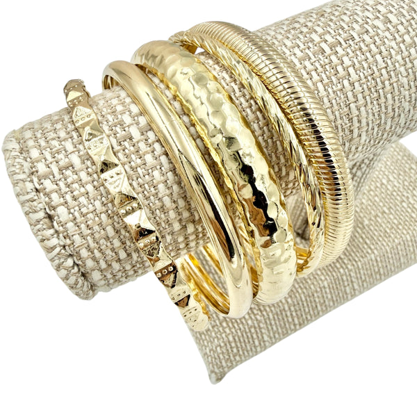 Gold Plated 5 Piece Bangle Bracelets (84544)(2.6in)