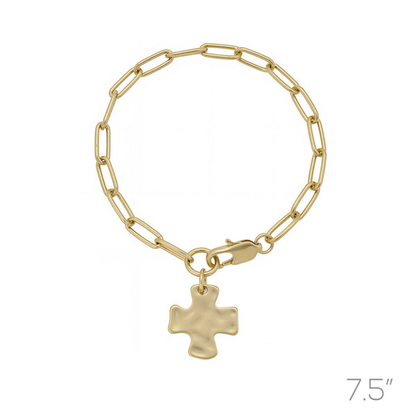 Gold Plated Hammered Cross Bracelet (7.5in)