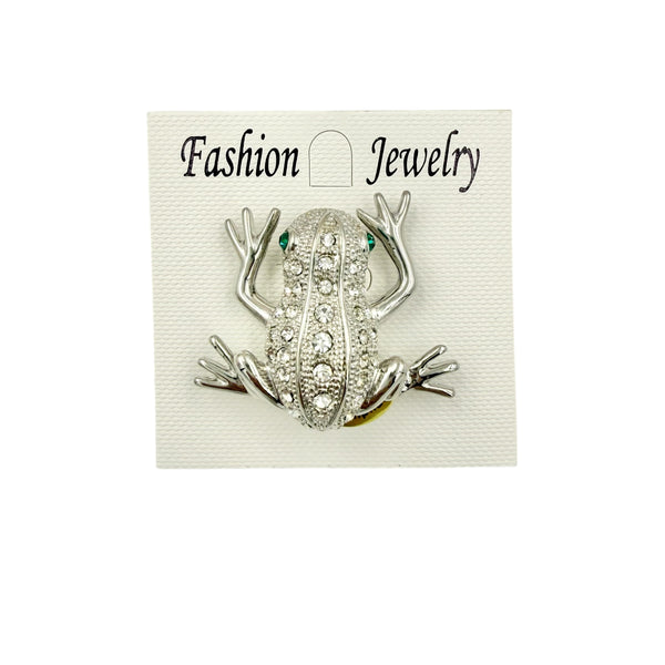 Green Eyed Frog Crystal Brooch Pin (AB7343)(1.5x1.5in)