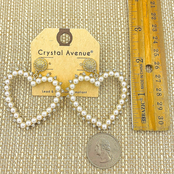 Heart Pearl Earrings in Silver or Gold (1.9x2.1in)