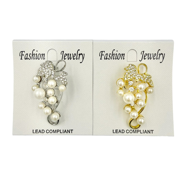 Pearl & Crystal Grape Brooch Pin - 2 Colors (AB13001)(1x2in)