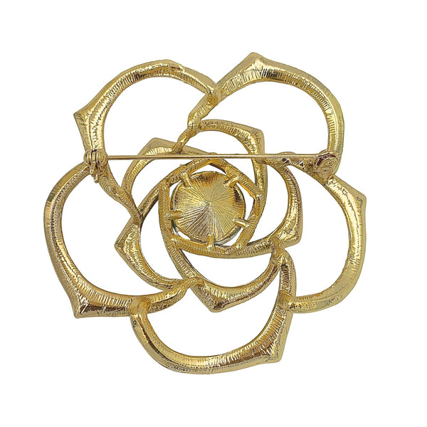 Pink & Green Crystal Studded Open Flower Pin (3x3in)