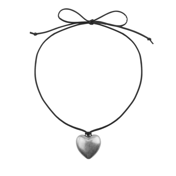 Puffy Heart Black Cord Necklace in Silver or Gold (37in)(1.4x1.5in)