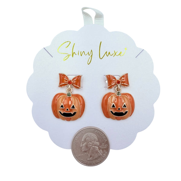 Pumpkin & Bow Halloween Themed Post Dangle Earrings