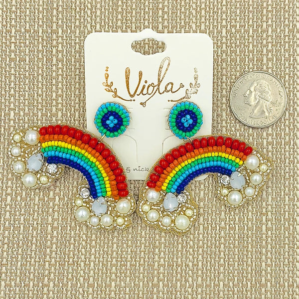 Rainbow & Pearls Beaded Dangle Earrings (2.5x2in)
