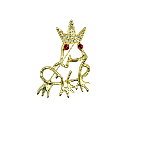 Red Eyed Frog Wearing Crown Brooch Pin (A89952G)(1.5x2in)