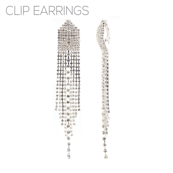 Rhinestone Crystal Fringe Clip On Earrings (0.75x4.25in)