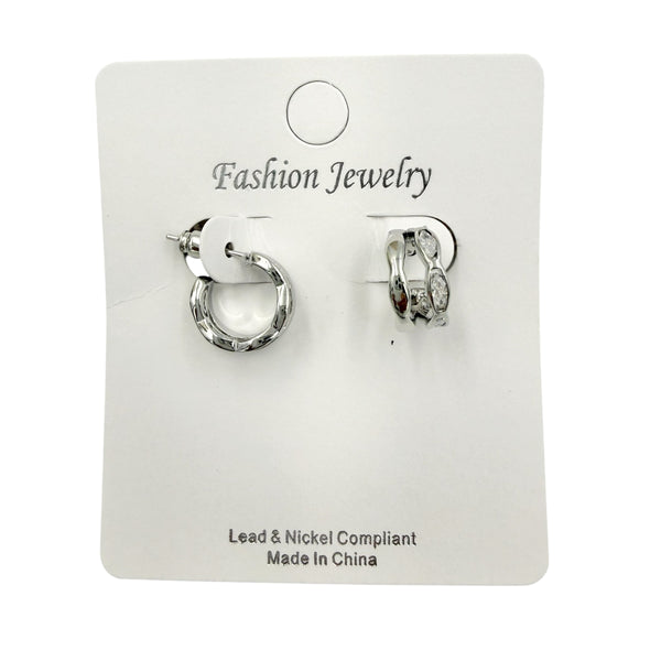 Rhinestone Huggie Hoop Earrings in Silver or Gold (E8640)(0.4x0.6in)