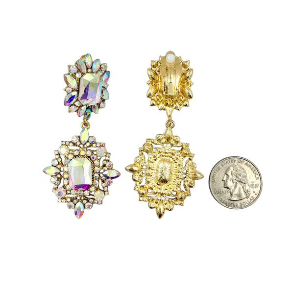 Rhinestone Rectangle Shaped Burst Clip On Earrings (1.42x3.0in)
