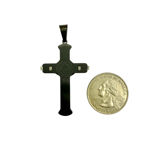 Stainless Steel Cross Crucifix San Benito Pendant (5068)(1x2in)