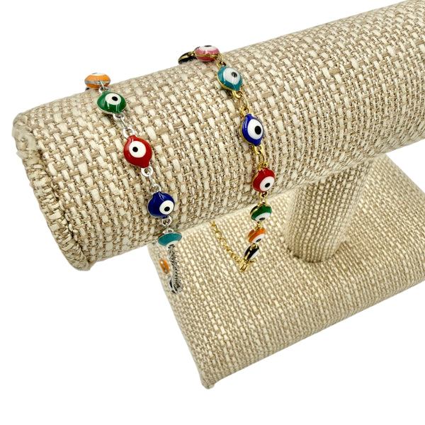 Stainless Steel Evil Eye Bracelet in Silver or Gold (6.5+1.5in)
