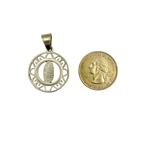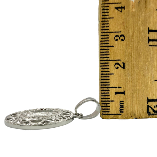 Stainless Steel Guadalupe Crystal Round Halo Portrait Pendant (8382)(1x1.5in)