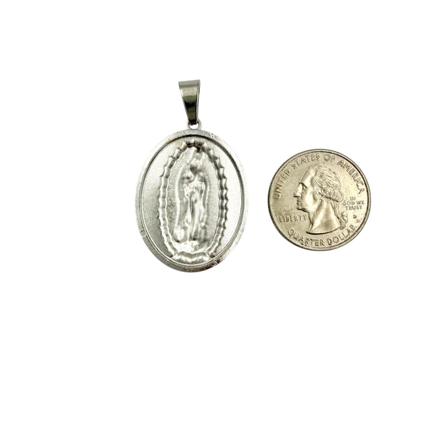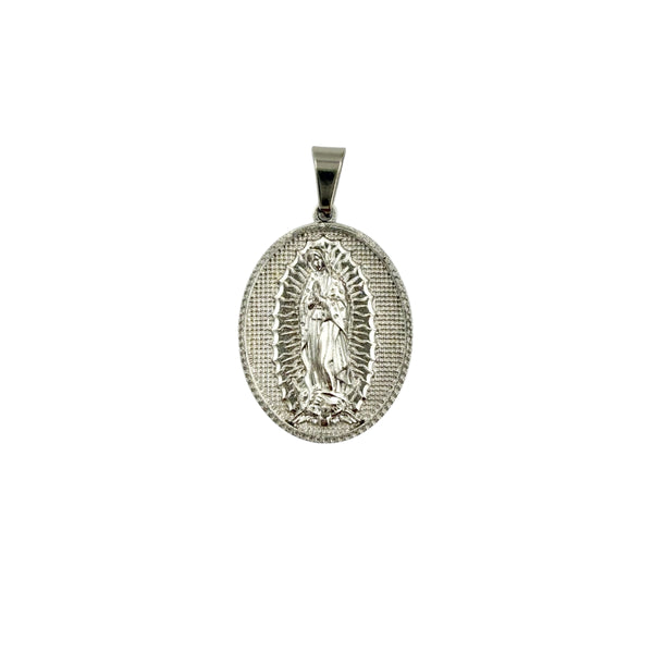 Stainless Steel Guadalupe Halo Portrait Pendant (1x1.75in)