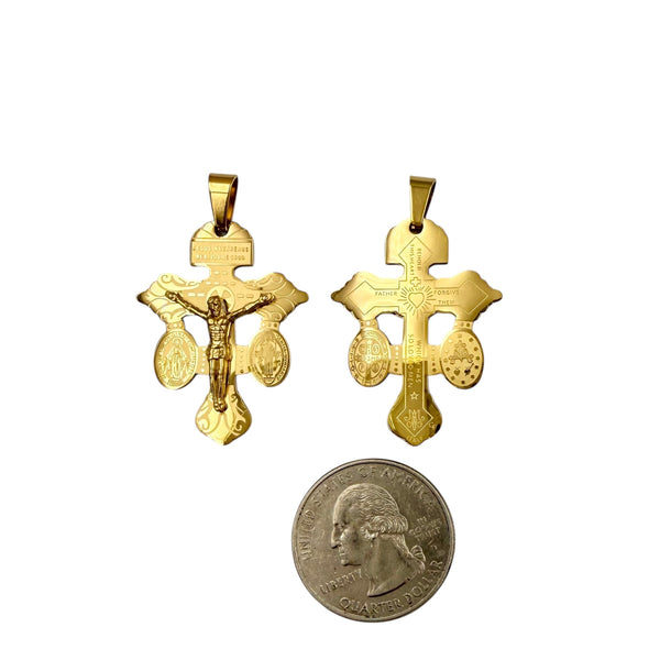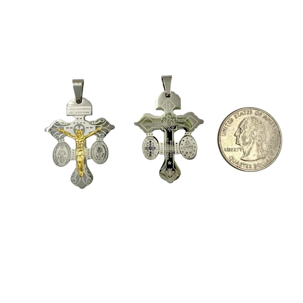 Stainless Steel Medium Crucifix San Benito Pendant - 2 Colors (3706)(1x1.5in)