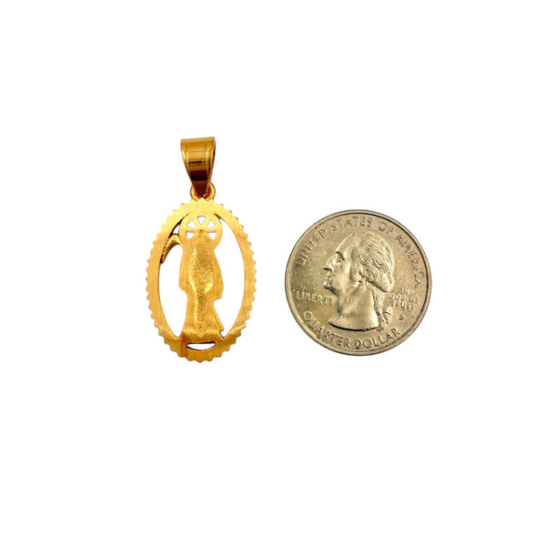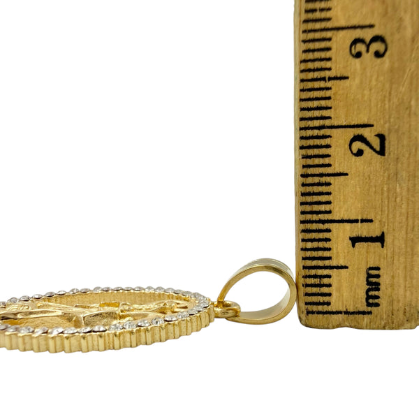 Stainless Steel Santa Muerte Oval Crystal Pendant (8217)(0.75x1.25in)