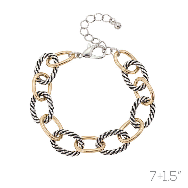 Two Tone Cable Rope Link Bracelet (7+1.5in)