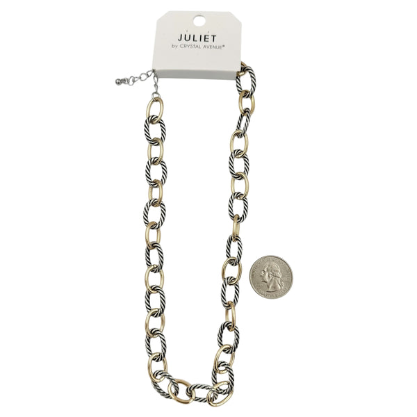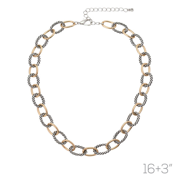 Two Tone Cable Rope Link Necklace (16+3in)