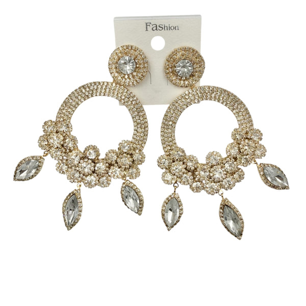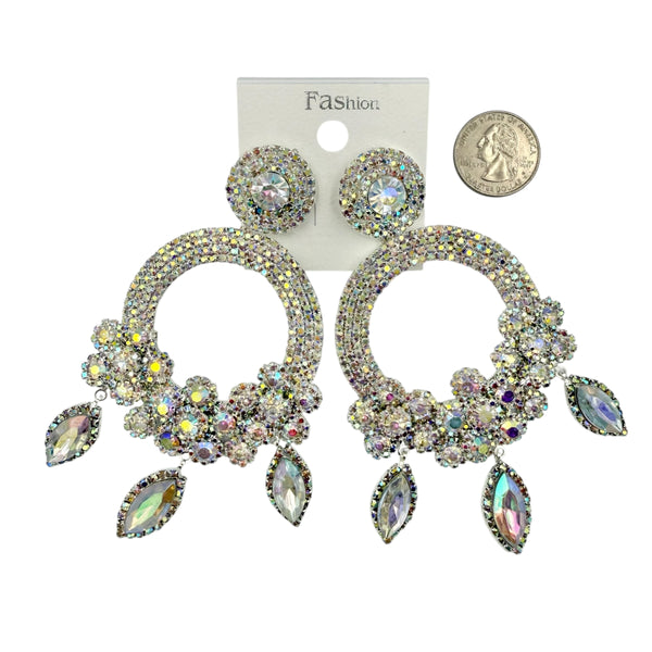 XL Rhinestone Round Marquis Drop Earrings - 5 Colors (35238)(2.5x4.5in)